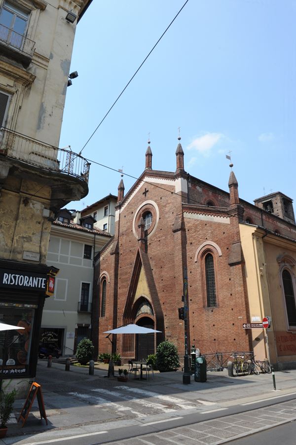 La costruzione, iniziata nel 1227 (unico esempio di architettura gotica in Torino), venne ampliata dopo la seconda metà del secolo, subì trasformazioni nella sua struttura nel Seicento e nel Settecento da decorazioni barocche, ora gli è stato restituito il suo aspetto originario.