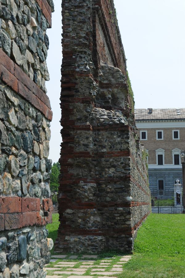 I mattoni utilizzati nella struttura erano di forma rettangolare, ampiamente in uso in tutta l’area padana, con lato maggiore della lunghezza di sesquipedale (letteralmente sesquipedale significa “di un piede e mezzo”).